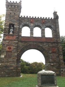 As one of the most successful journalists of his time, Townsend was able accumulate a tidy fortune which enabled him to buy a 100 acre parcel of land near Crampton’s Gap, South Mountain, Maryland. There, he built a baronial estate he called Gapland. Near the end of the century, Townsend built a monument to war correspondents to memorialize the contributions of his colleagues North and South. Dedicated in 1896, the memorial arch is 50 foot high and 40 feet wide. The War Correspondent Memorial Arch now stands on the grounds of the Gathland State Park, part of Townsends original estate, now operated by the Maryland Department of Natural Resources.[iv]