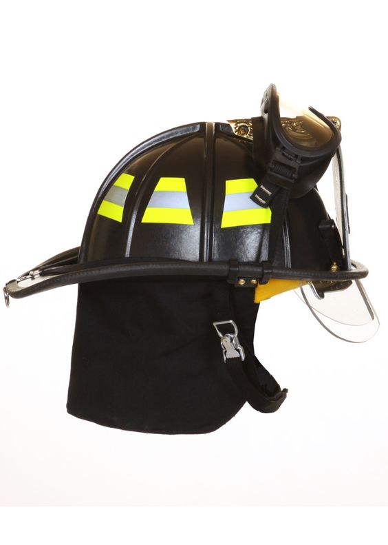 The shape of a fire helmet is unmistakable, even now. Firefighting headgear has changed technologically to provide fresh air, light, and communication, but its shape has remained remarkably similar to those from well over a century ago. The back of the helmet dips lower than the front, providing neck protection for its wearer. This design is used today, and a secondary havelock is built into the helmet itself.