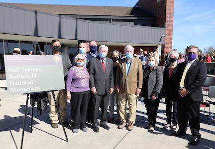 The new battlefield is the result of the united efforts of Congressman Hal Rogers, U.S. Senate Majority Leader Mitch McConnell, the U.S. Department of the Interior, the National Park Service, the Mill Springs Battlefield Association (MSBA), the American Battlefield Trust and local leaders. Today, a public celebration was held on the lawn of the Civil War battlefield’s Visitor Center and Museum with the 101st Airborne Division (Air Assault) Band from Fort Campbell.