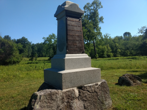 The monument to the 27th Indiana near Spangler’s Spring, looking out over the field they attacked over. Rankin served on the regimental monument committee. (Author’s Photo)