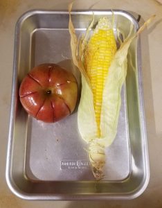 The roasting brings out a really nice flavor from the corn and I think it was much easier than boiling the ear of corn (the way I would typically prepare it). As for the apple, oh my…it is basically like a baked apple, but without the extra sugar or spices. I will definitely be roasting corn and apples again.