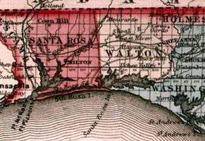 “Early settlers of Walton County, Florida were the first to establish permanent settlements in what is now Fort Walton Beach (the area was originally named “Anderson”). Two of the first settlers were John Anderson and Andrew Alvarez, who received land plots in 1838. The name “Anderson” is noted on maps from 1838 to 1884. It was not until 1911 that the name “Camp Walton” appeared on Florida maps.”
