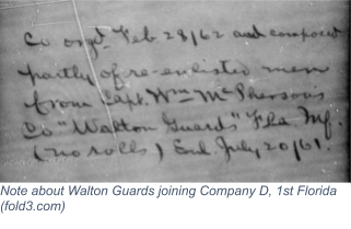 As Mike said, slavery was definitely present in northwest Florida. I intend to do more research on the subject and have a book about slave accounts from Florida that I haven’t cracked open just yet. Many of the men from the Walton Guard were farmers, but given my own knowledge about the area east of Pensacola where they would have come from, they weren’t planters and likely didn’t own slaves for field labor, but I can’t confirm that for sure. They might have had cooks or house servants. There is no surviving official record of the members of the Walton Guard (no muster rolls, that is) so I can’t drill down into the history of each of the 90-something men very easily at this point.