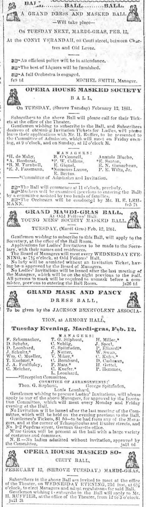 [2] “Mardi-Gras,” New Orleans Daily Crescent, February 13, 1861.