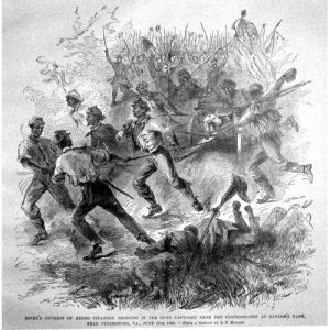 Even more impressive was Hinks’ attack. Christian Fleetwood, a free black businessman of the 4th USCT, boasted “swept like a tornado over the works.”[vi] In two hours of nearly constant fighting, the USCT regiments, relatively green before June 15, had carried nearly a mile of enemy trenches. They cheered their victory and yelled “Fort Pillow!”[vii] The path to Petersburg was wide open.