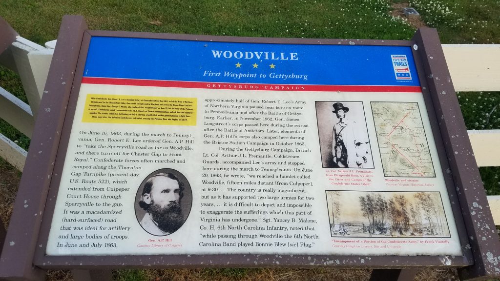AP Hill’s Third Corps marched through Woodville during it flank march around Meade’s army in October 1863.