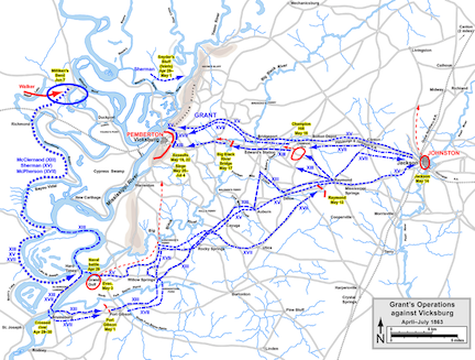 To illustrate what I mean, take a look at this map of U.S. Grant’s advance on Vicksburg in 1863: