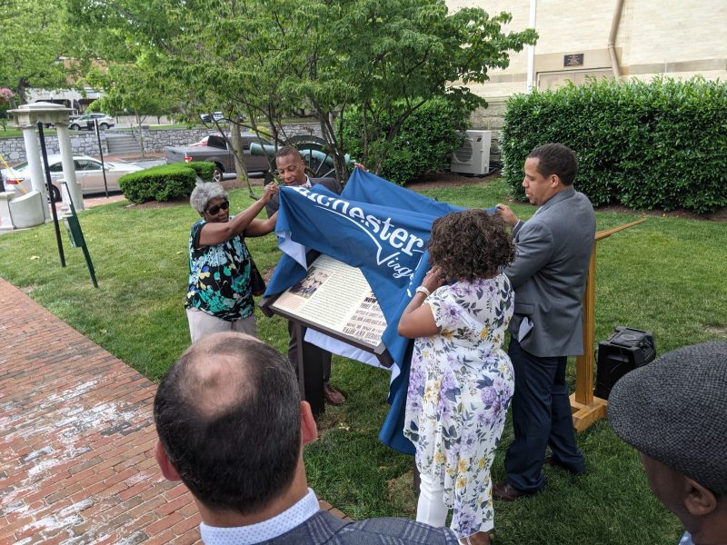 In his opening remarks, Mike Faison, President of the Winchester Area NAACP branch quoted Frederick Douglass. “He who would be free must himself strike that blow” and Faison ex-plained that, “179,000 men, and thousands who were former slaves, volunteered to fight for the Union army; nearly 37,000 gave their lives for the cause.” Mr. Faison also mentioned the or-ganizations who came together to help promote the story and bring the project to fruition. The project was the result of a community partnership between the Winchester-Frederick County Convention and Visitors Bureau, Shenandoah University’s McCormick Civil War Institute, the City, the Winchester NAACP and Civil War Trails, Inc. Each playing a different role in the funding, creation, and placement of the sign.
