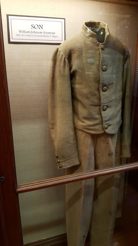 Uniform of William Seymour, aide to General Harry Hays of the Louisiana Brigade, on display at Confederate Memorial Hall, New Orleans (author photo, 2020)