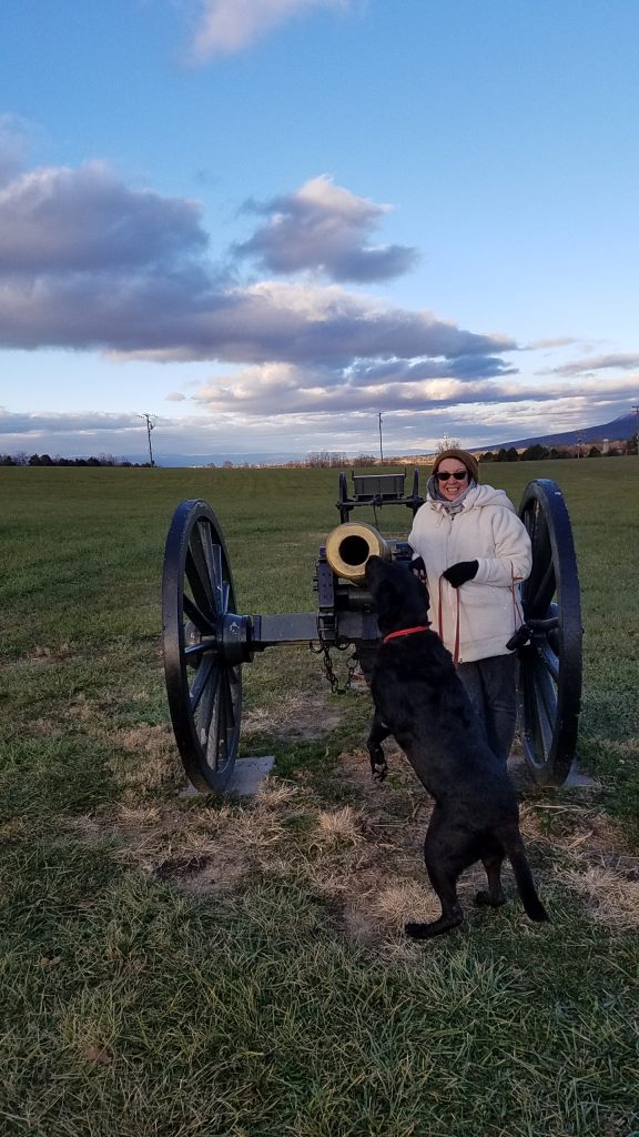 Over Thanksgiving weekend, my adopted aunt wanted a personal tour of New Market Battlefield in the Shenandoah Valley, and I was pleased to share one of my favorite historic sites with her. This battlefield tour walk was a little different than others I’ve led because we took her two dogs with us. (New Market Battlefield State Historical Park welcomes leashed dogs and responsible owners.)