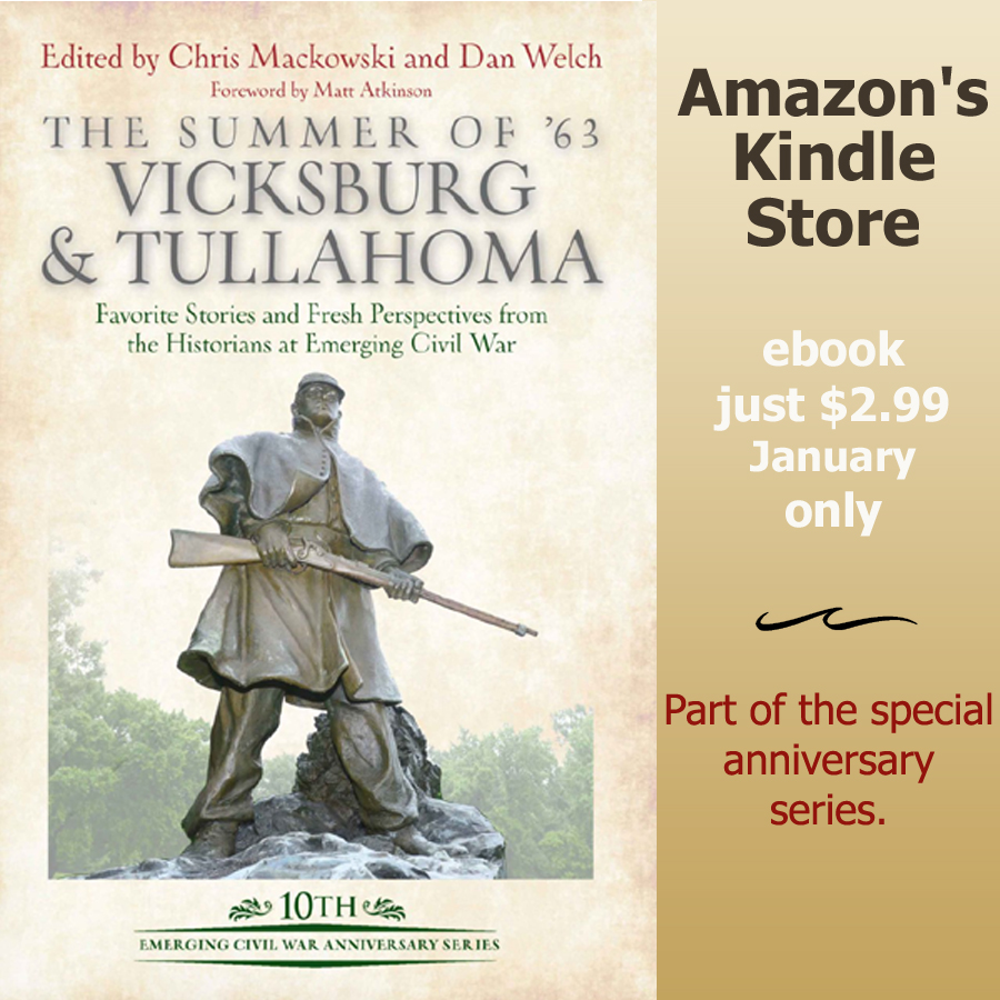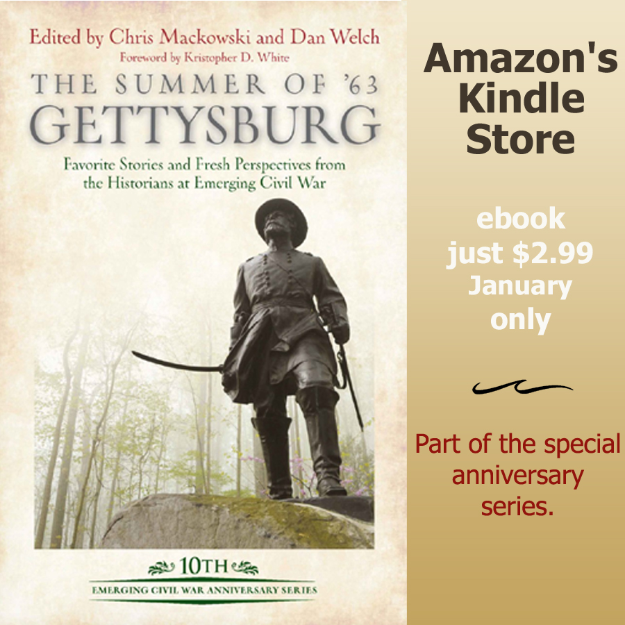 Emerging Civil War is getting a little extra love from Amazon this month. The first two titles in our Emerging Civil War 10th Anniversary Series will be featured specials in Amazon’s Kindle store in the month of January. Each Summer of ’63 book will be only $2.99. Order here.