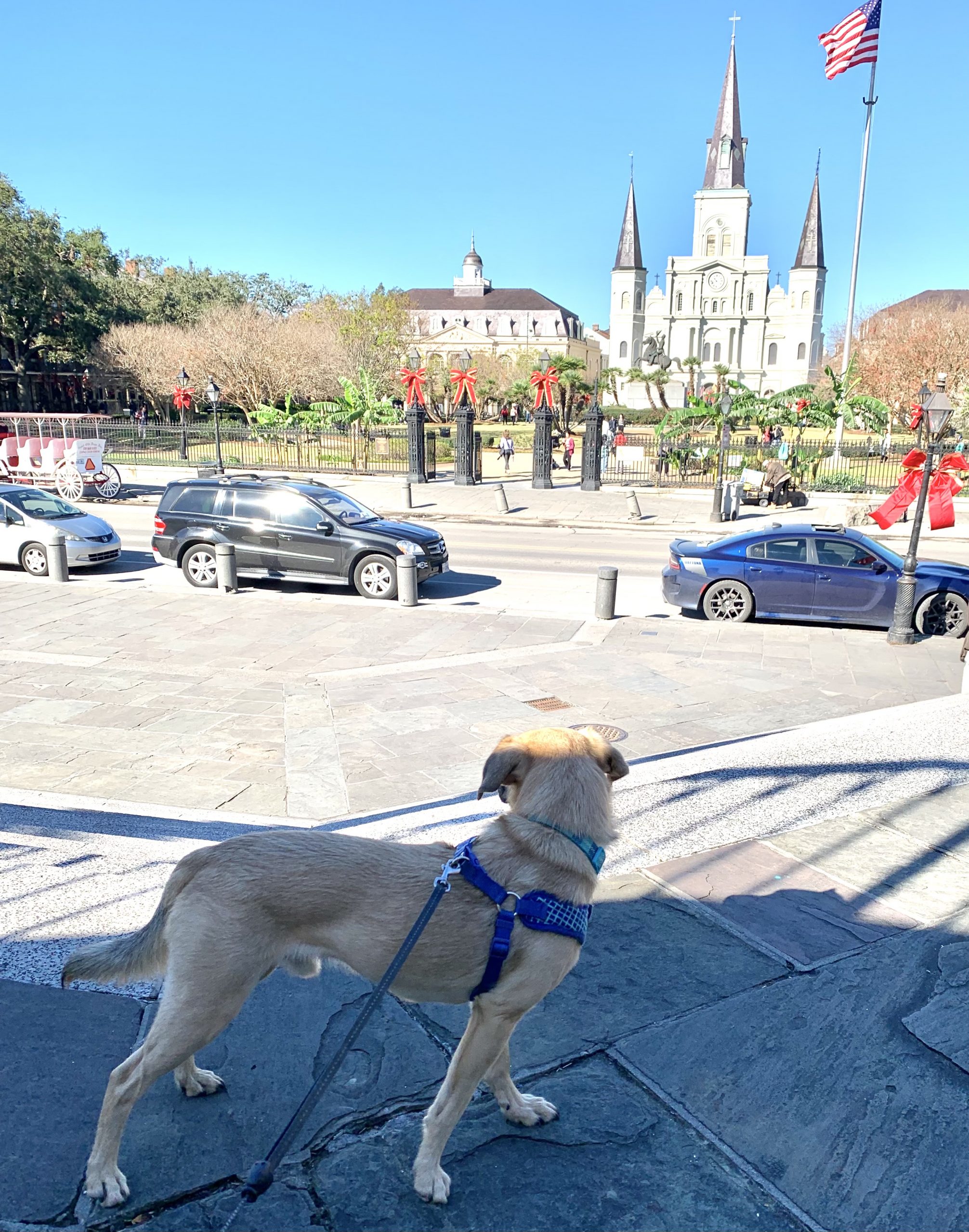 From Jackson Square, Mouton and I zig-zagged up Chartres and Royal Streets, where we turned east to return to the Faubourg Marigny, passing at least one building dating back to the eighteenth century where renovated slave and servant quarters were clearly visible in a courtyard behind a main home. There was one final historical marker to see on our dog walk-turned tour. The last was a single sign in the Marigny, on the corner of Royal Street and Homer Plessy Way, at the site of the old Press Street railroad station. This marker commemorates where Homer Plessy was arrested in 1892 for purposefully violating Louisiana’s Separate Car Act, challenging legalized segregation laws. Though Plessy’s case ultimately failed, it inspired others to later act, eventually shattering legalized segregation in the United States.