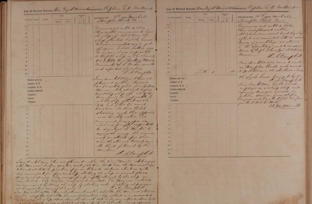 By no means is USS Minnesota’s deck log the premier source for the Battle of Hampton Roads. But the availability of these logs, the first draft of the battle’s history, allows us to see what mattered to the ships, their officers, and crews in those pivotal days.