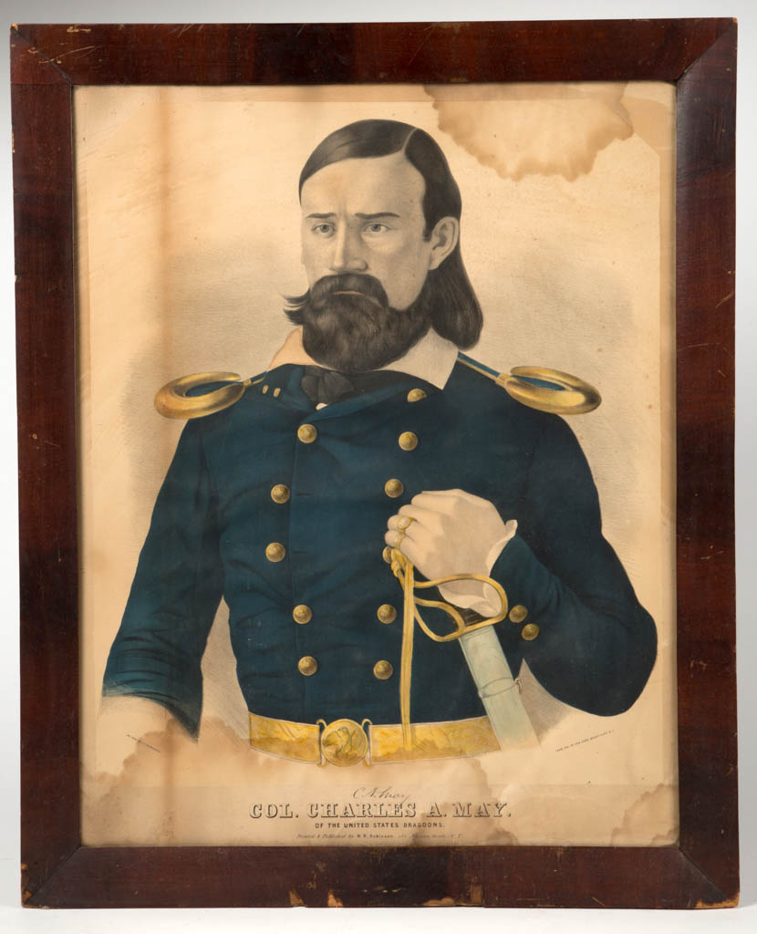 In 1861, over 250 U.S. Army officers resigned their commissions. The majority joined the rebellion, while a few remained loyal to the Union. Nineteen officers (seven percent) didn’t serve on either side. The choice was not so simple for these officers. Some were loyal to the Union but would not take up arms against friends who joined the rebellion, while others supported the Confederacy but refused to draw a sword against the Stars and Stripes or old army comrades. Others cited age or fragile health and choose to let younger men do the bloodletting.[1] Among the officers who elected to avoid fighting in the war, Brevet Colonel Charles Augustus May is the most celebrated.