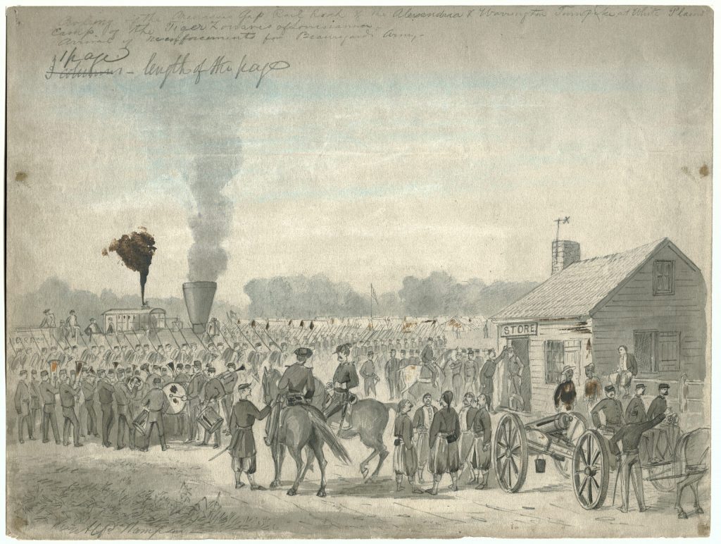 Great points about the speed of marches, and the enlightened use of railroads. But I was equally interested in your first sketch, by Alfred Wordsworth Thompson. The sketch resembled the work of Civil War sketch artist Henry Mosler of Cincinnati, and I’d never before heard of Thompson (sketching for the Rebels.) More of Thompson’s work can be found on Google, via “Alfred Wordsworth Thompson Virginia” and select “images.”