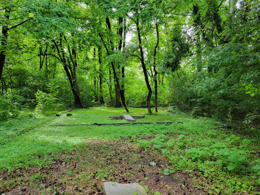 A little further on, a shady grove covers the prisoners’ cemetery. There aren’t obvious gravestones, but someone laid some large stones in the shape of a memorial cross.