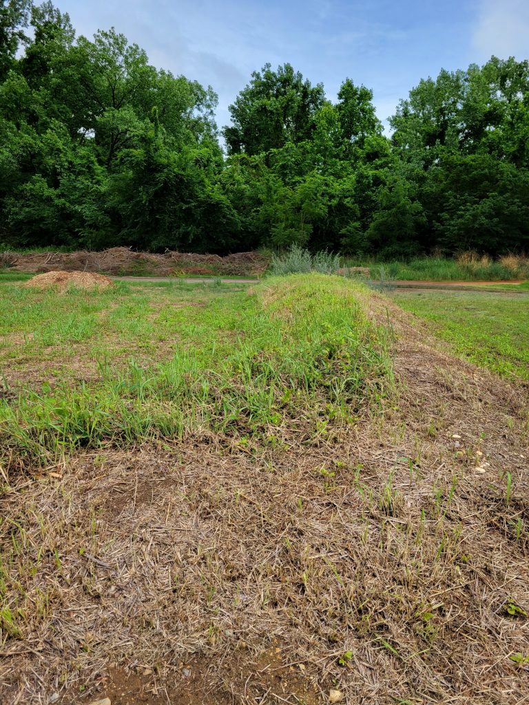 A sort of earthwork line caught my eye next. It looked like a border and I wondered if it had been part of the prison camp or if it was leftover from a later project. A sign confirmed my suspicion: this was the dead line of the prison camp. On the high ground behind it, cannon overlooked the prisoners. Without a stockade, the Confederate guards used the artillery threat and the dead line to contain the prisoners. Anyone caught trying to cross the low earthwork would be shot by the guards.