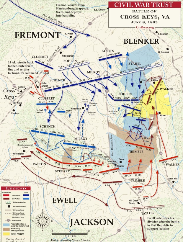 For Cross Keys Battlefield touring resources, check out this page from Shenandoah Valley Battlefields National Historic District: https://static1.squarespace.com/static/613911608f726a197609489e/t/61a12d2e01d66c32ef94978c/1637952865932/Cross-Keys-Port-Republic-Driving-Tour.pdf