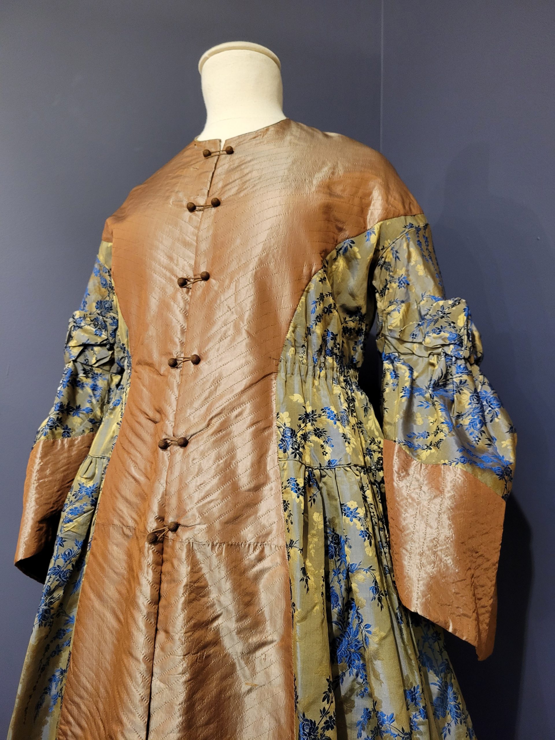 This wrapper (like a housecoat or robe) was one of my favorite pieces on display! I’ve actually sewn a wrapper that is somewhat similar in design, but this one has gorgeous tailoring lines, and I love the two different fabrics.