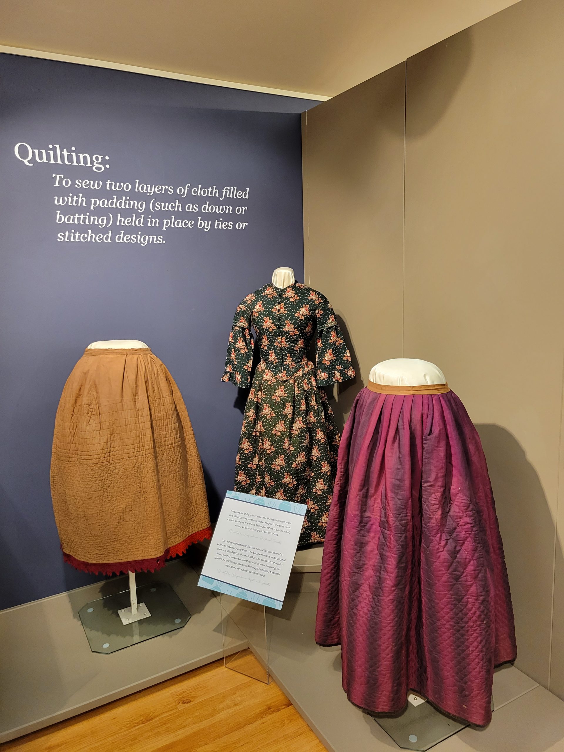 Quilted petticoats from the 1850s and 1860s. See, not all women wore hoop-skirts or cages. These would have been helpful for keeping warm in the winter!