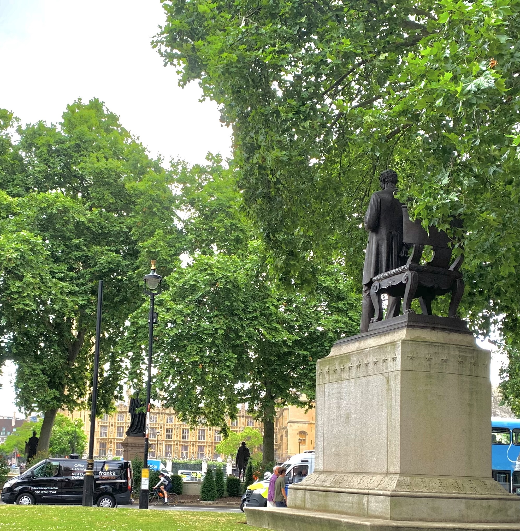 Parliament Square is an open section of the city right in the middle of this political center of the United Kingdom. It sits across the street from Westminster Abbey, across the street from where the UK Supreme Court meets, and across the street from the Palace of Westminster. We almost overlooked the square completely but decided to cross the street from Westminster Abbey to get a better photo opportunity of the UK’s Parliament building. Numerous statues dotting the square immediately caught my eye. My wife took to her camera for the best photos of the Palace of Westminster she could take. I began investigating the statues.
