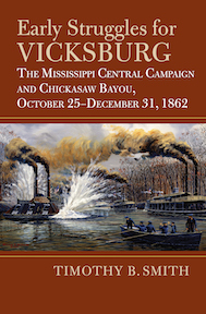 I hope folks have been paying attention: Timothy B. Smith has quietly been amassing an incredible body of work on the Vicksburg campaign these past couple years. Over the previous two summers, he covered the Union assaults at Vicksburg and then the Siege of Vicksburg. This summer, he backtracks to the beginning of the entire campaign with Early Struggles for Vicksburg: The Mississippi Central Campaign and Chickasaw Bayou, October 25-December 31, 1862.