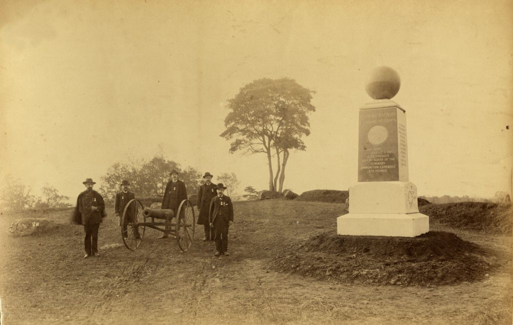 That summer he was with the battery as it moved through Maryland and Pennsylvania towards Gettysburg. The battery was stationed north of the Lutheran Seminary on July 1, 1863 until forced back through town when the US First Corps retreated. On July 2, Chase and the battery were placed along Steven’s Knoll and heavily engaged against the Confederate’s evening assaults on East Cemetery Hill. While the battery fired canister into the flanks of the advancing foe, Confederate artillery opened up with counter-battery fire. One shell exploded near Chase, and he later stated that “forty-eight pieces of it entered my body.” While Chase believed it was Confederate fire that struck him down, others have set forth the possibility that a shell Chase was loading into his gun prematurely detonated. As recorded in Walter Beyer and Oscar Keydel’s 1901 book Deeds of Valor: How America’s Heroes Won the Medal of Honor, Chase claimed that the first words he said when he regained consciousness while being carted away from the field were “Did we win the battle?”[2]