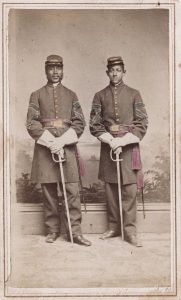 Was Pvt. Foster’s experience unusual? Finding records that confirm a formerly enslaved Confederate camp servant later became a soldier in the United States Colored Troops are fairly rare. But it was certainly not uncommon for self-emancipated men, and some women, who made it into Federal lines, to work as officers’ servants. In addition, some men of color who lived in the free states also started their military careers as servants before becoming soldiers. There are dozens of documented cases that serve as examples.