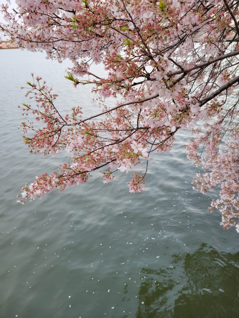 Continuing the brisk walk in the chilly morning, we head toward the Tidal Basin. The basin wasn’t created until the 1870s, but this is the location of the prime cherry blossoms, so of course we’re going to see them!