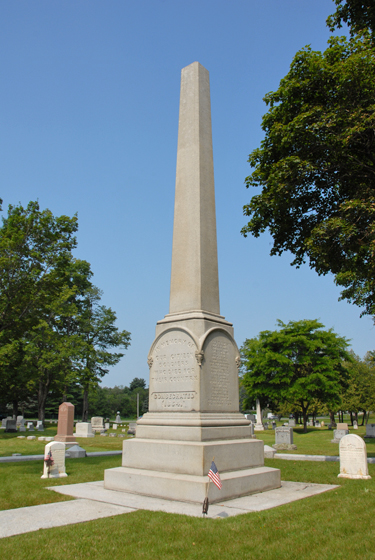 Made from gray granite quarried in Concord, New Hampshire, the obelisk was “a very handsome structure” that added “materially to the attractions at Mount Hope,” observed Daily Whig & Courier publisher William S. Wheeler.