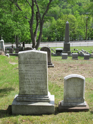 The Bangor Soldiers’ Monument still stands, but the Carpenters have moved on. Perhaps fed up with strangers tramping on the graves, Carpenter relatives relocated the bodies years later to the high ground (the actual Mount Hope) beyond the monument. Father and son still lie there side by side, their headstones overlooking the nearby Penobscot River.