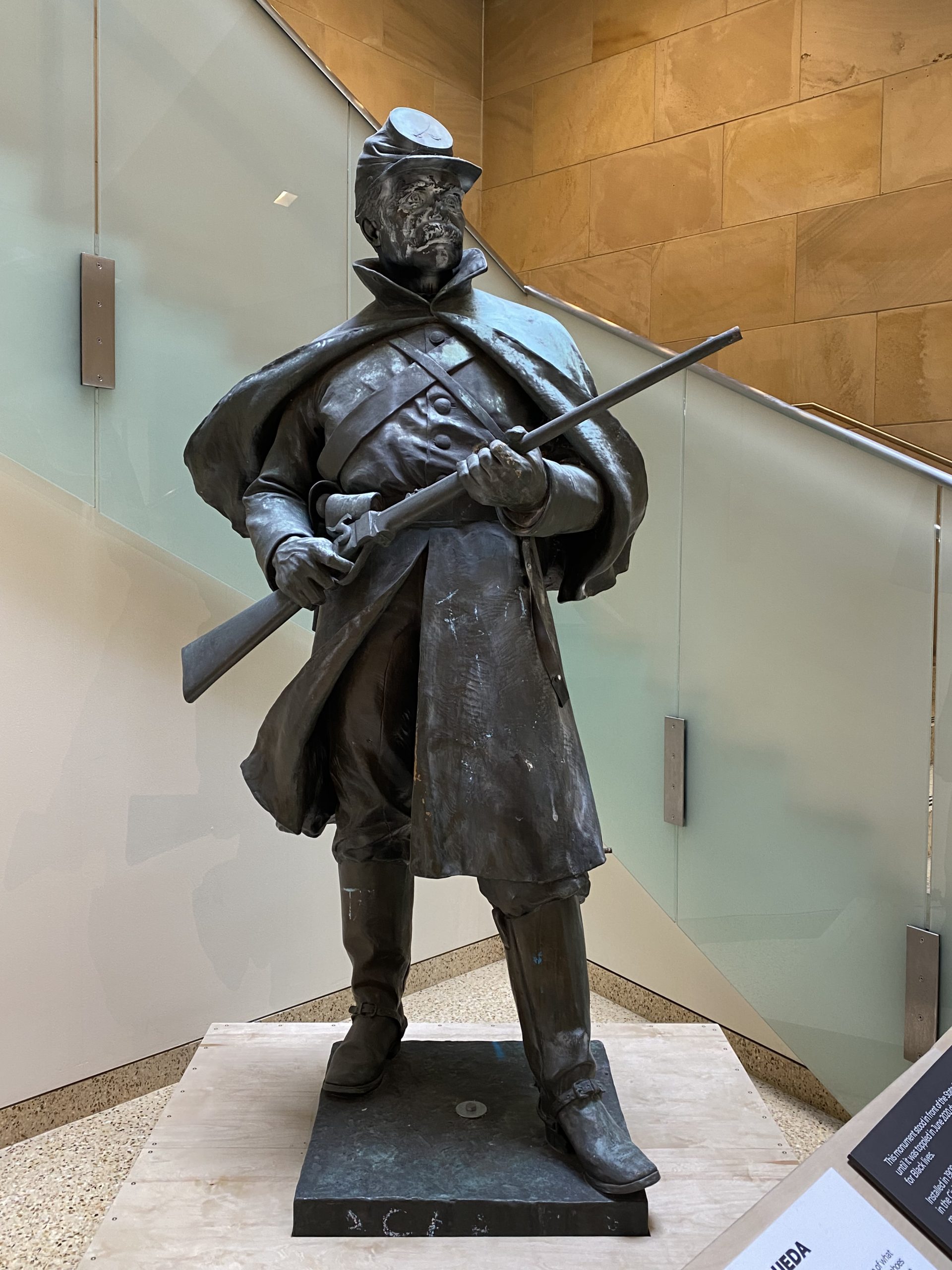 The most prominent piece of Civil War history in the museum is On Guard, a monument to the Colorado Volunteers who served during the war. Today it’s located just past the entrance lobby; you really can’t miss it as you head toward any of the exhibits. Until it was torn down during protests in 2020, the monument was on a pedestal outside of the Colorado State Capitol, just a couple of blocks away.