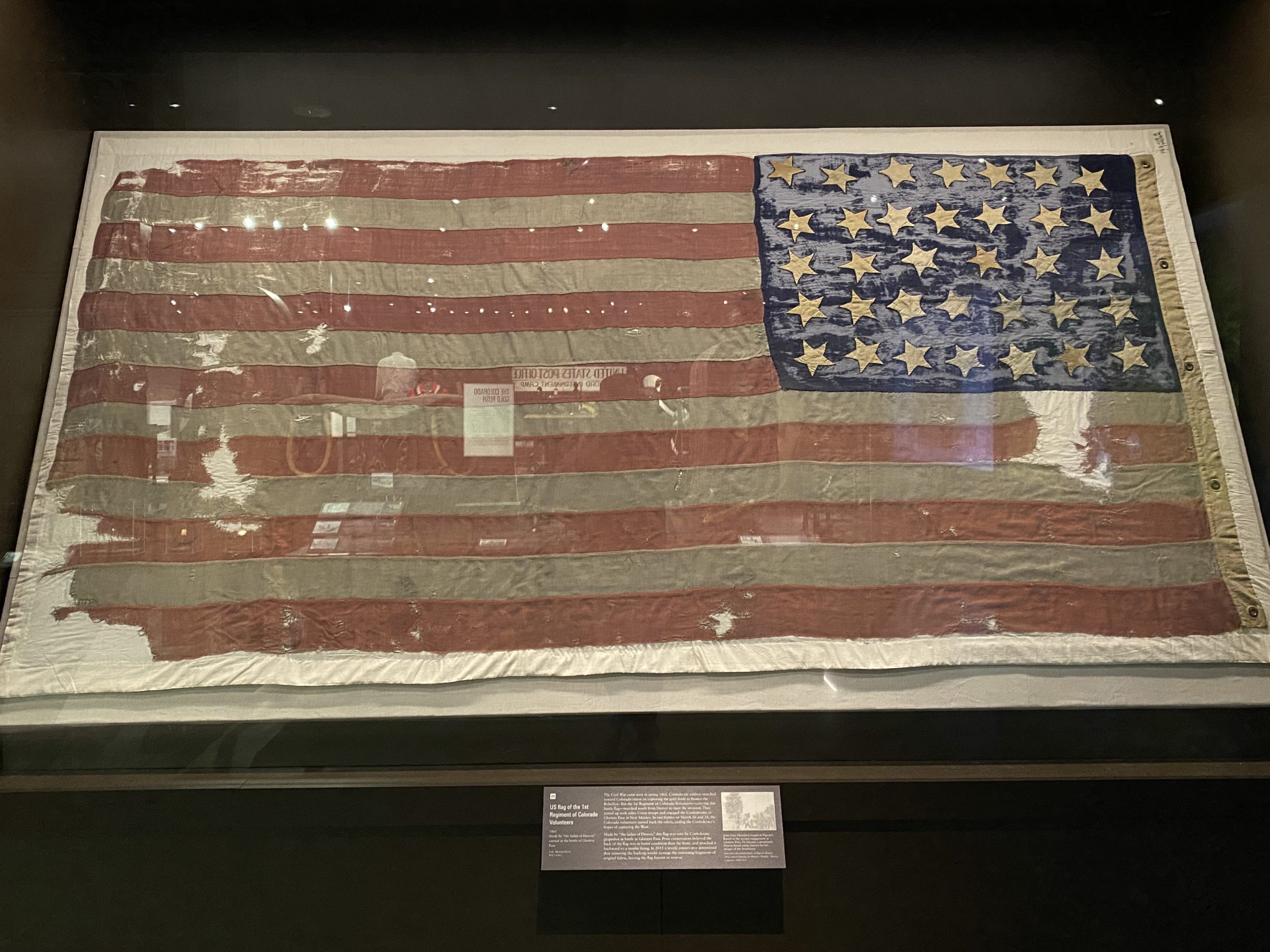 Soule served in the 1st Colorado, which was the heart of the Union army at the battle of Glorieta in 1862. Their flag – now full of holes from Confederate grapeshot – is on prominent display as one of 100 objections that defined Colorado history. This is representative of the degree to which the museum, throughout its exhibits, conveys the idea that Colorado was “born in the midst of the Civil War.”