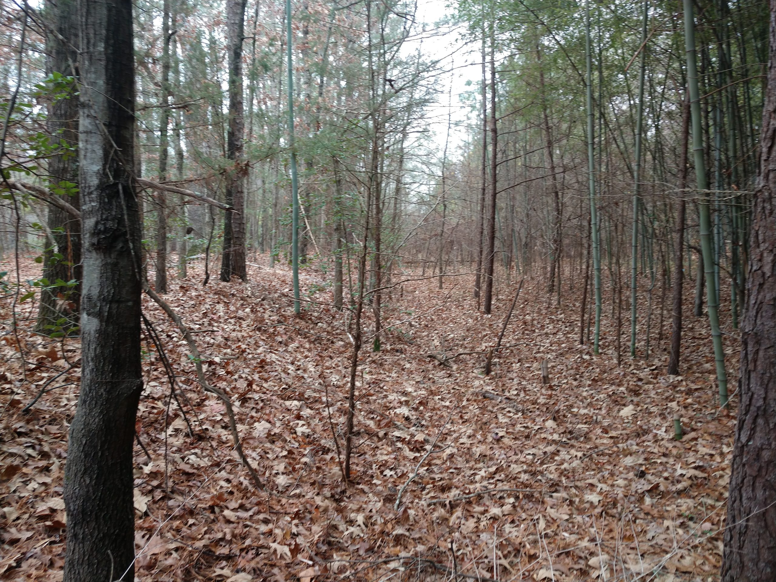 Having accessed both ‘ends’ of the old road, I was determined to get to the part that is now gone. I made the effort to walk the missing ‘link’ of the road one Sunday morning, before traffic was too heavy. I started by walking across the exit ramps and the four lanes of I-295 (not recommended). Sure enough, right where I thought it would be, I found the old roadbed in the median, covered by thick woods and underbrush.