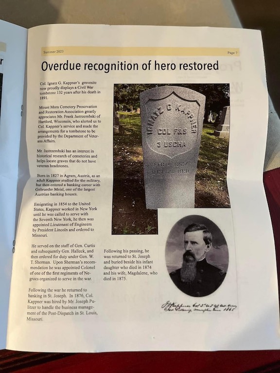 A veteran headstone was placed at Col. Ignatz G. Kappner’s unmarked grave.