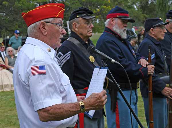 As SUVCW Chaplain Howard Black started to read the prayer of dedication, a siren sounded in the distance, then intensified as a sheriff’s patrol cruiser raced north on Park Street. “Almighty God, we thank you for your sovereign care and protection,” Black said.