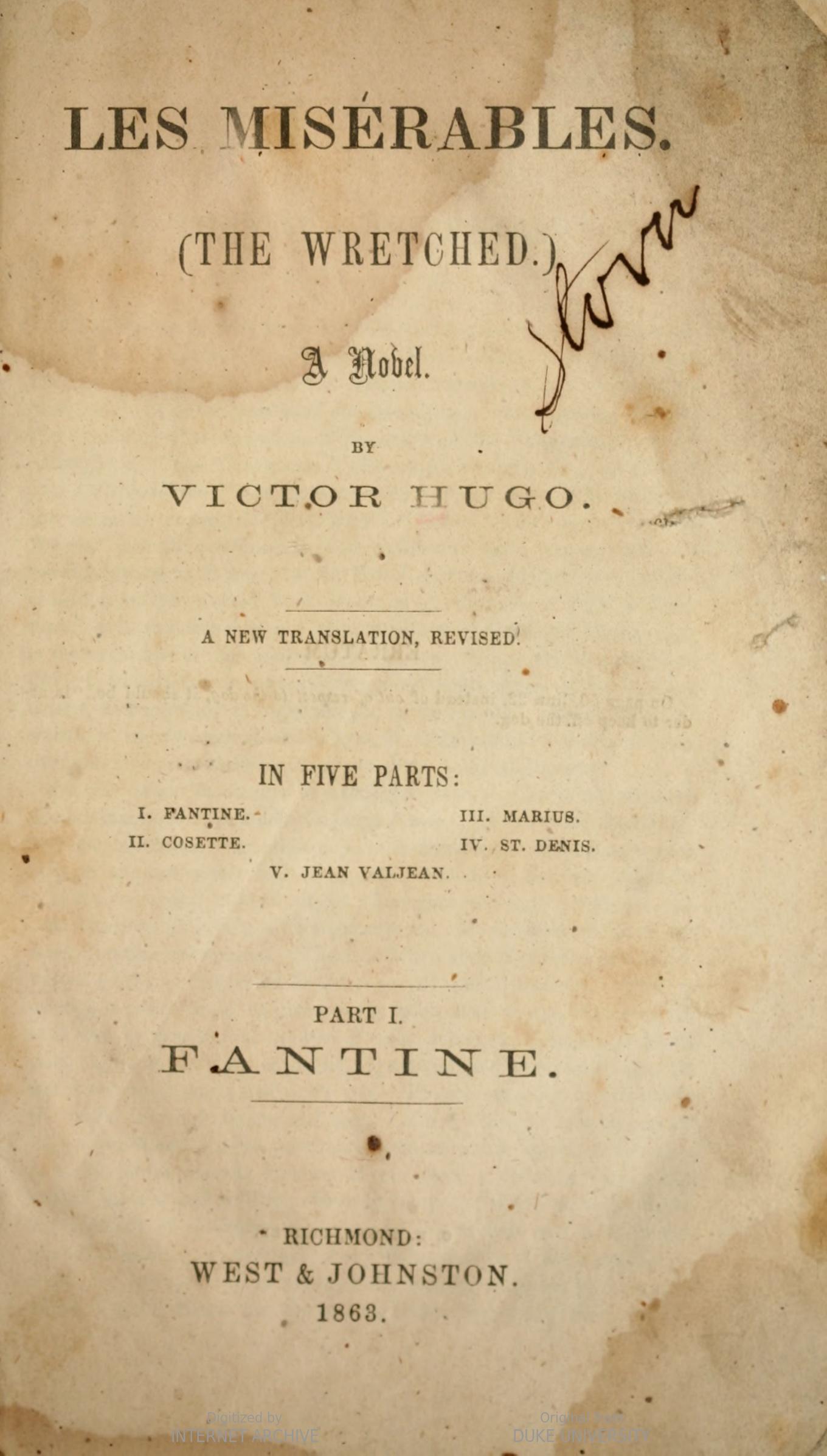 [1] Victor Hugo, Les Misérables (Boston: Little, Brown & Co., 1887), Vol. IV, 89.