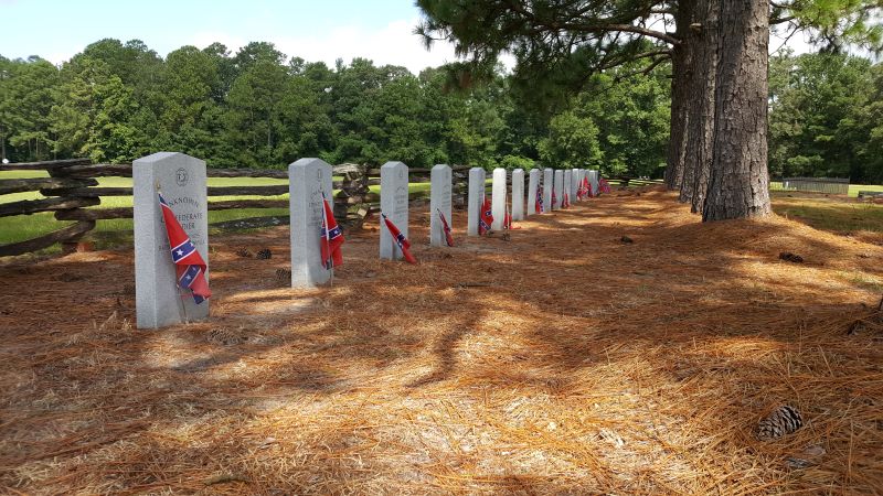A Confederate cemetery contain the remains of 360 soldiers who died during the battle of Bentonville, including soldiers who were recovering from wounds at the Harper House. Some are marked, but many are unknown.