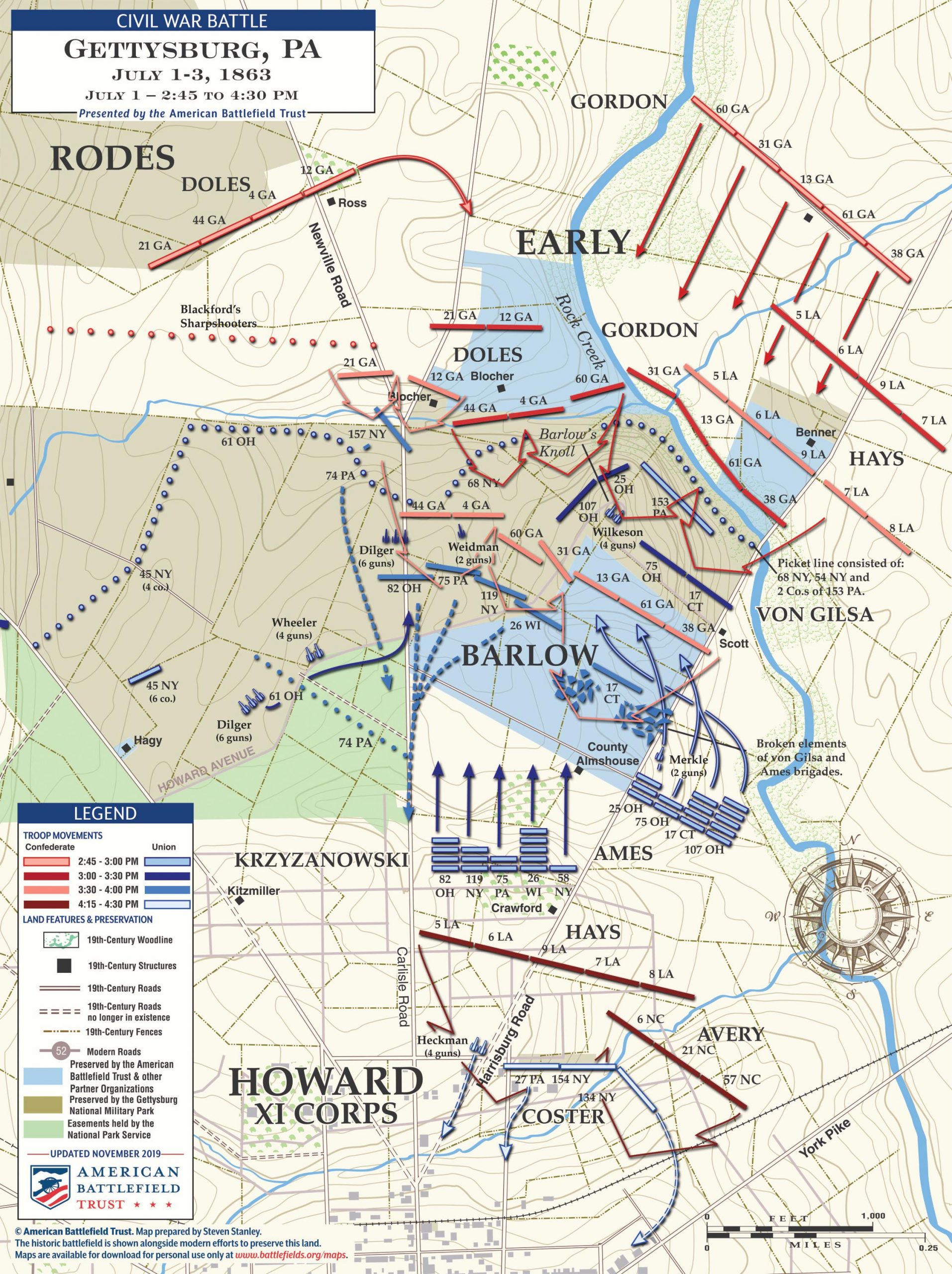 The following day, Roth’s comrades in the 74th Pennsylvania defeated a Confederate attack on Cemetery Hill and redeemed their honor. However, the lieutenant’s body was never recovered. He most likely lies in the unknown section of the Soldiers’ National Cemetery on Cemetery Hill—ironically, the place he sought before he was killed.[8]