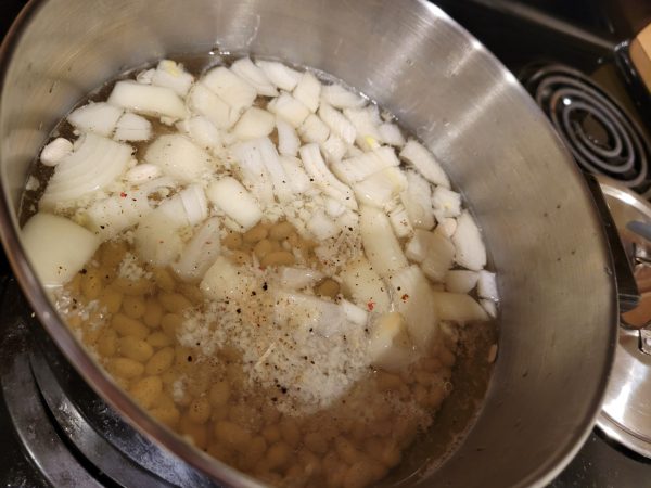 After pre-soaking some white beans, I put them on the stove to simmer slowly.