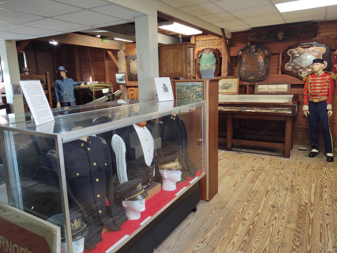 Various uniforms and equipment are on display in the museum, which itself is a historic barracks building. Author Photo.