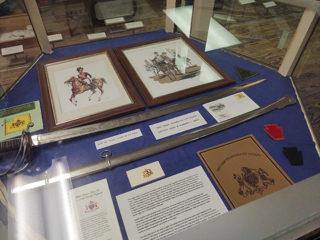 Exhibit about the First Troop Philadelphia Cavalry, the oldest Pennsylvania military unit Formed during the Revolution, it was in the field during the Gettysburg campaign. Author Photo.