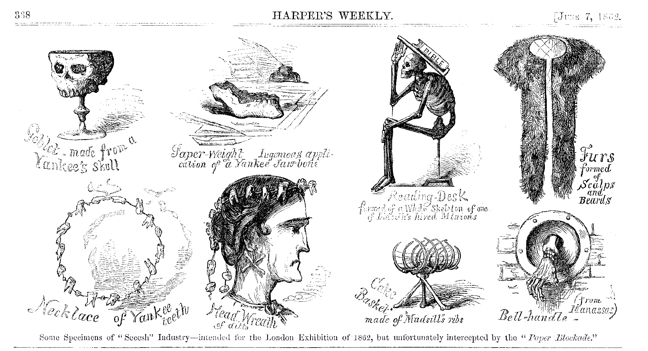 I’m wondering if this is a double-troll. The cartoon was in Harper’s, which is a very New York yankee publication. So it was as if someone was trolling the yankees about thinking that the southerners collect yankee teeth. As if the cartoonist was saying “you/we yankees are so primitive and prone to stereotyping that you/we think all southerners collect yankee teeth” etc.