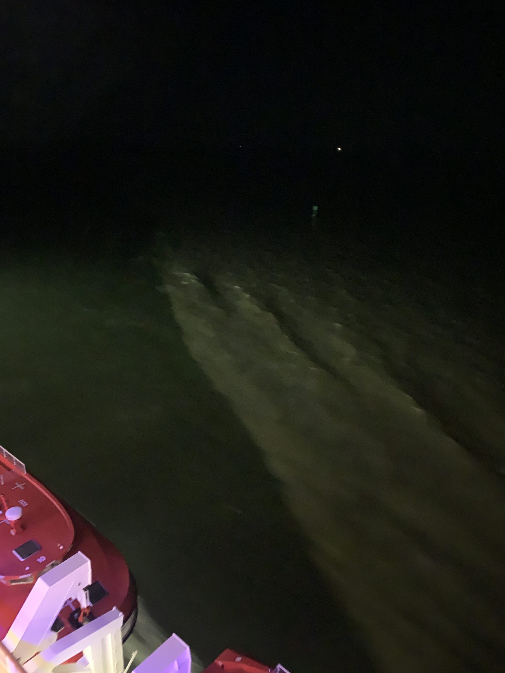 We passed the Head of Passes at near midnight, following the path of CSS Manassas as it led the Confederate squadron downriver to make the October 1861 attack. Again, I snapped some photos in the darkness, recording what that darkness looked like. Beyond that was the open Gulf of Mexico, where I snapped one last image of the line where the fresh water of the Mississippi River meets the salt water of the Gulf. The phenomena was well known in Civil Wat times, with U.S. General Halbert E. Paine wrote in his diary on April 16, 1862 about how “the dividing line between the blue water of the ocean and yellow water of the Mississippi is well defined, for miles, at sea. The surface water is fresh for several miles from land.”[6] Just as it was Paine’s introduction to the Mississippi River in the war, that same line where fresh and salt water was my introduction to the Gulf of Mexico for this trip.