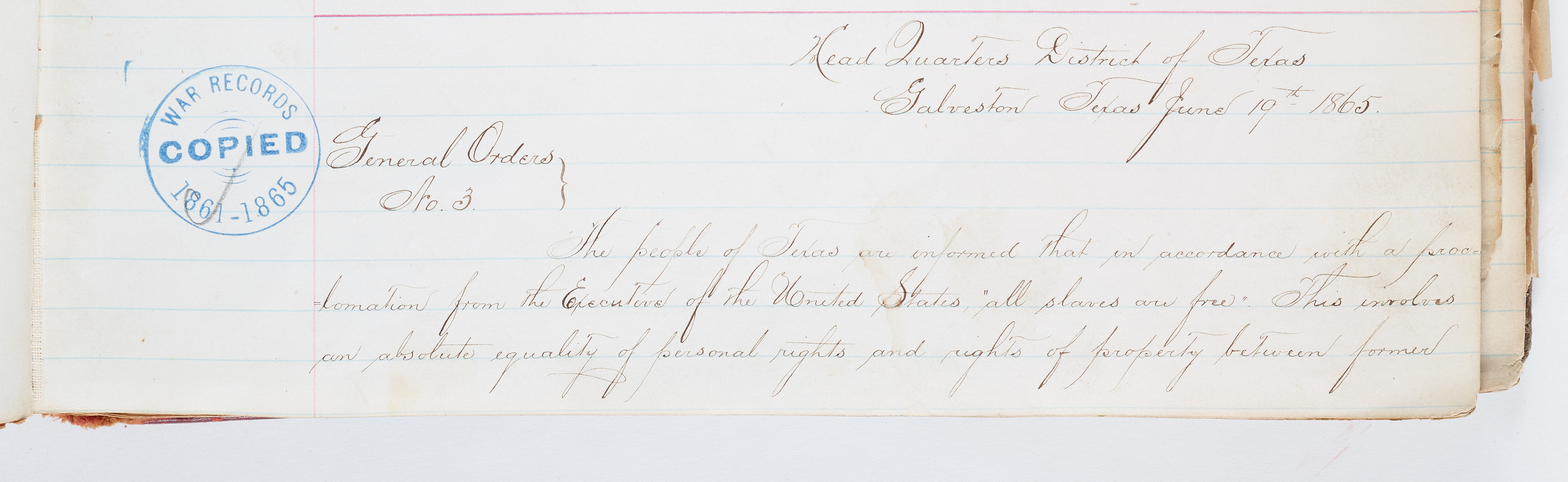 “All Slaves Are Free”: General Granger’s Juneteenth Order