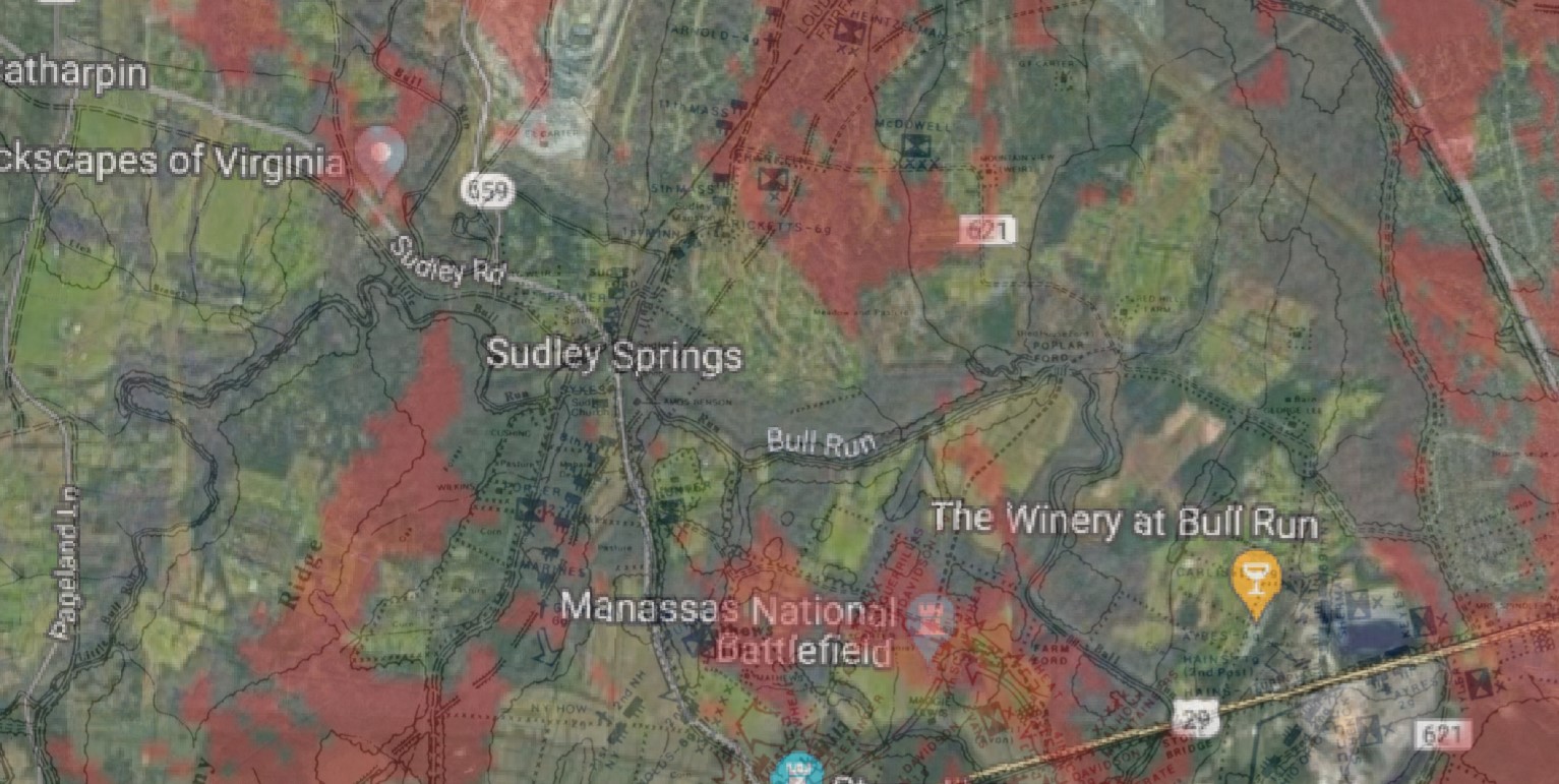 The development in the Manassas area has made it impossible to recreate Alexander’s direct line of sight from Wilcoxen’s Hill (known officially as Signal Hill today) to the area around the Stone Bridge. Thankfully, modern viewshed analysis, which factors in terrain but not buildings, gives us some idea of what Alexander saw from atop Signal Hill.