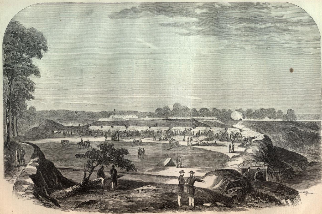 Its walls completed and its guns in place, Dwight had a platform built on a lookout tower where he placed a table, easy chair, and a supply of liquid refreshment to observe the spectacle. On June 26, he and his staff, immaculately dressed, climbed to their perch. Glancing at his watch – 3:45 p.m. – Dwight gave the signal to open fire. For two days the shots flew. When they finally fell silent and the smoke cleared, much to Dwight’s disappointment, little had changed.[8]