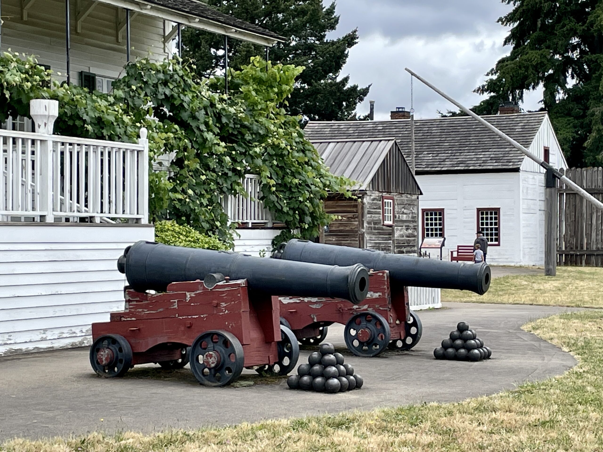Fort Vancouver is located on the northern side of the Columbia River, which serves as the border between Oregon and Washington, less than ten miles north of the city of Portland, Oregon. On a clear day, visitors can see the snowy peaks of nearby Mt. Hood, Mt. Saint Helens, and Mt. Adams in the distance. Since we were there on a cloudy day, we did not have those views – but just the day before, we got a magnificent view of Mt. Hood, the largest mountain in Oregon which overlooks the city of Portland and stands at 11,249 feet.