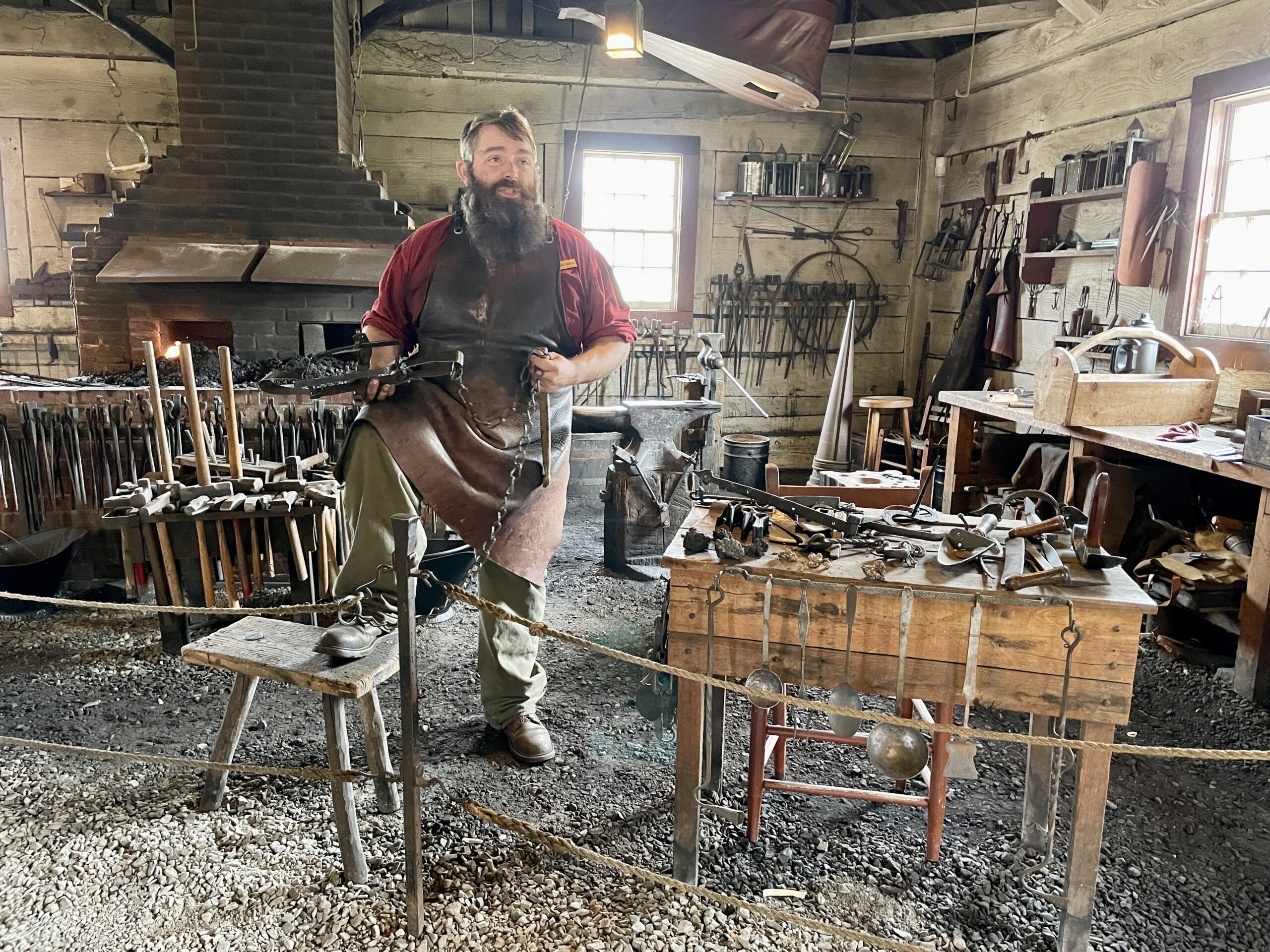 Today, Fort Vancouver National Historic Site includes Fort Vancouver, a visitor’s center, Vancouver Barracks, and Pearson Air Museum (one of the country’s oldest continuously operating airfields), all in Vancouver, Washington; and the McLoughlin House in Oregon City, Oregon. The fort itself features the Chief Factor’s House, kitchen, bakehouse, blacksmith shop, Barclay Quarters, Indian trade shop, fur store, carpenter shop, counting house, jail, and bastion. The buildings have all been carefully reconstructed on their original footprints since the actual fort burned down in 1866. On the day we were there, volunteers were manning both the blacksmith shop and carpenter shop, demonstrating work performed during the fort’s operation.