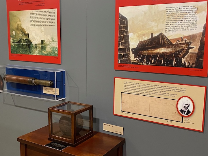 The museum tells the extensive 250-year history of the shipyard, from colonial days to the present. For Civil War buffs, there’s a good selection of naval stuff to look at, with a particular emphasis on the CSS Virginia (and its pre-conversion days as the USS Merrimack).